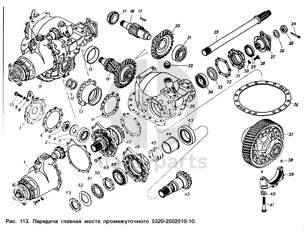 Гайка подшипника ведущей конической шестерни промежуточного моста в сборе