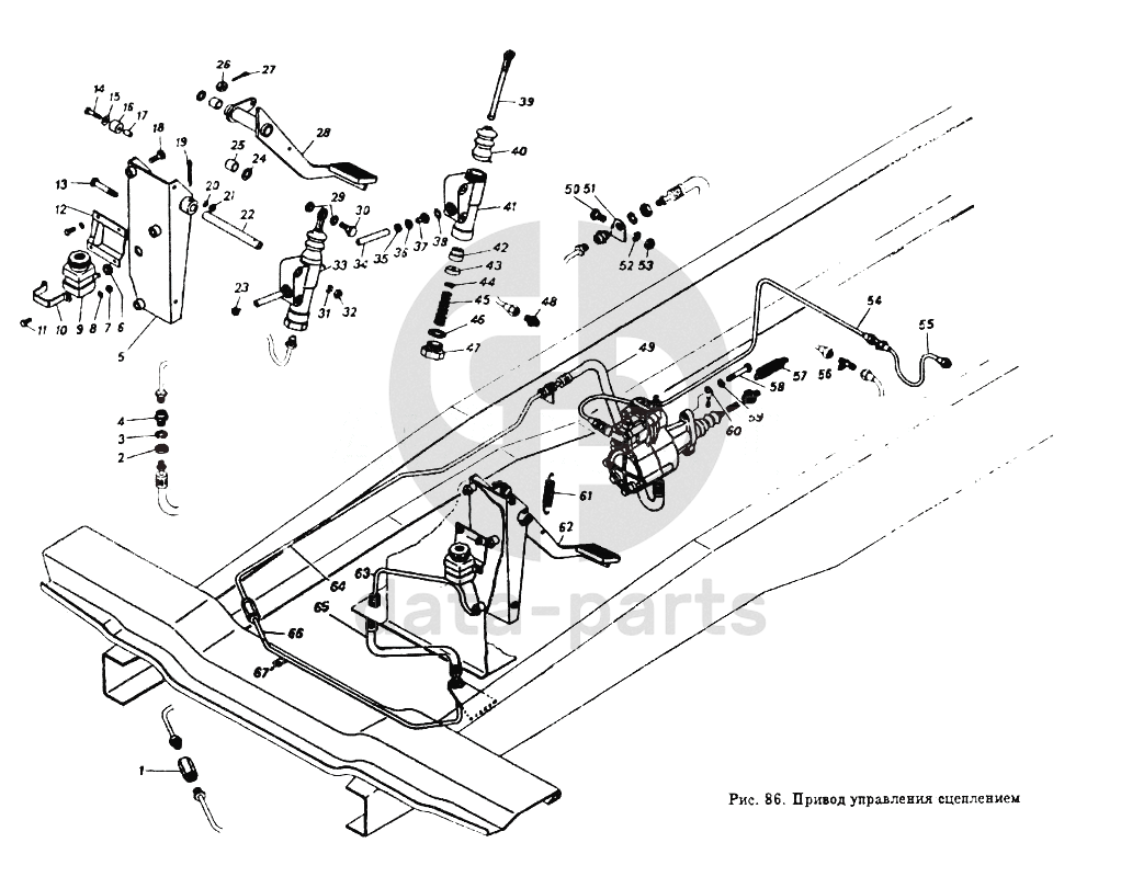 Педаль сцепления с кронштейном и главным цилиндром в сборе