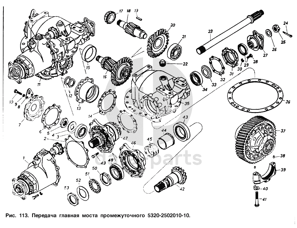 Гайка подшипника ведущей конической шестерни промежуточного моста в сборе