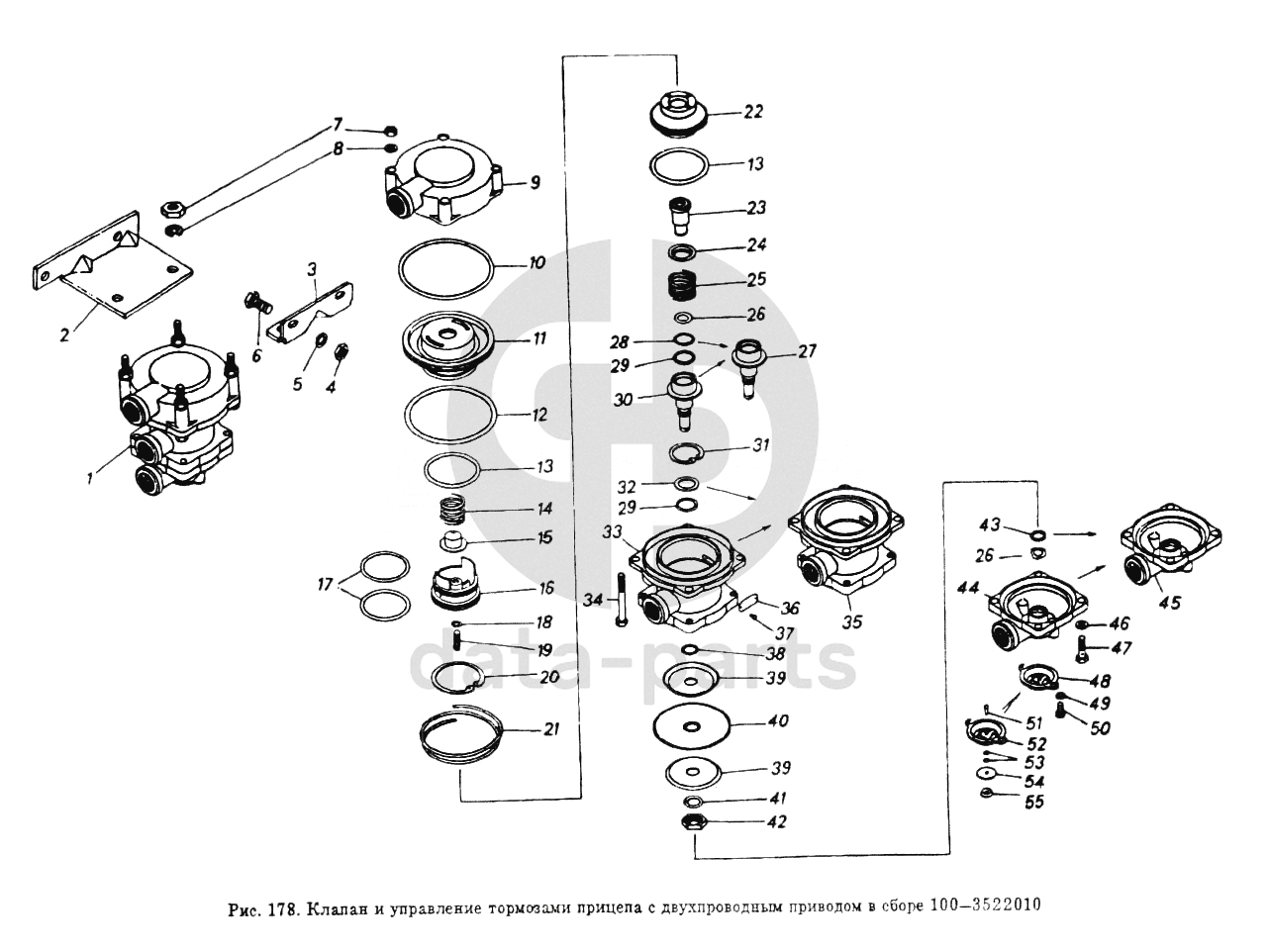 Клапан и управление тормозами прицепа с двухпроводным приводом в сборе
