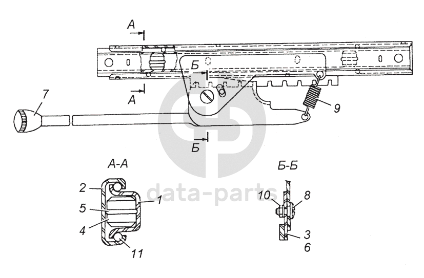 Направляющая механизма продольного перемещения сиденья верхняя в сборе