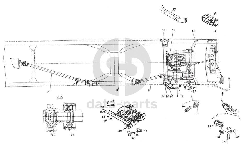 Вал карданный КАМАЗ лебедки промежуточный в сборе