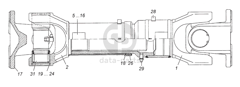 6350-2205011-10 Вал карданный среднего моста в сборе (сварка)