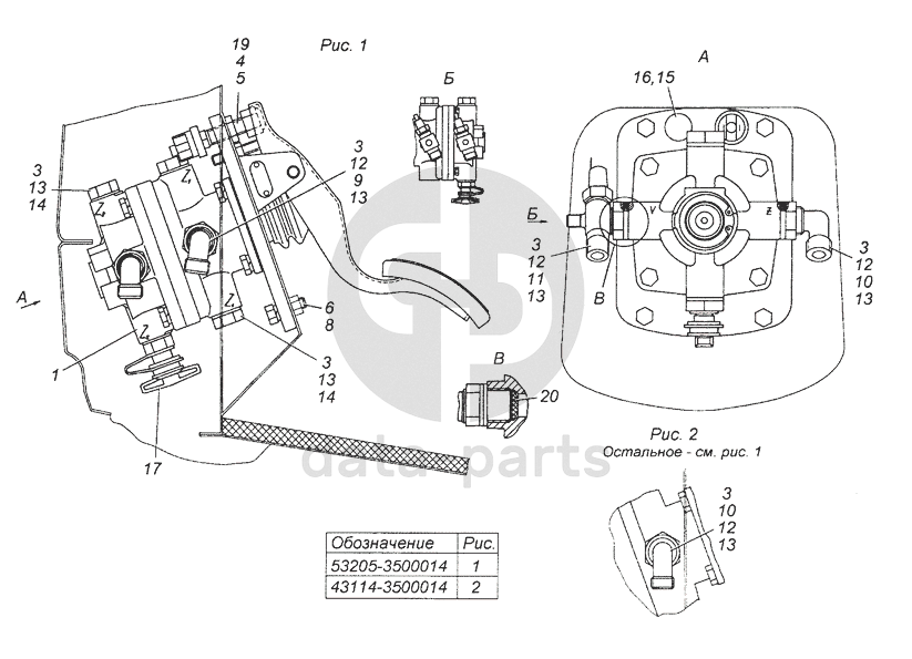 Кран КАМАЗ-ЕВРО тормозной 2-х секционный в сборе с педалью