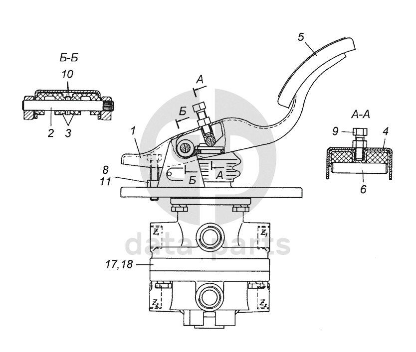 Кран КАМАЗ-ЕВРО тормозной 2-х секционный в сборе с педалью