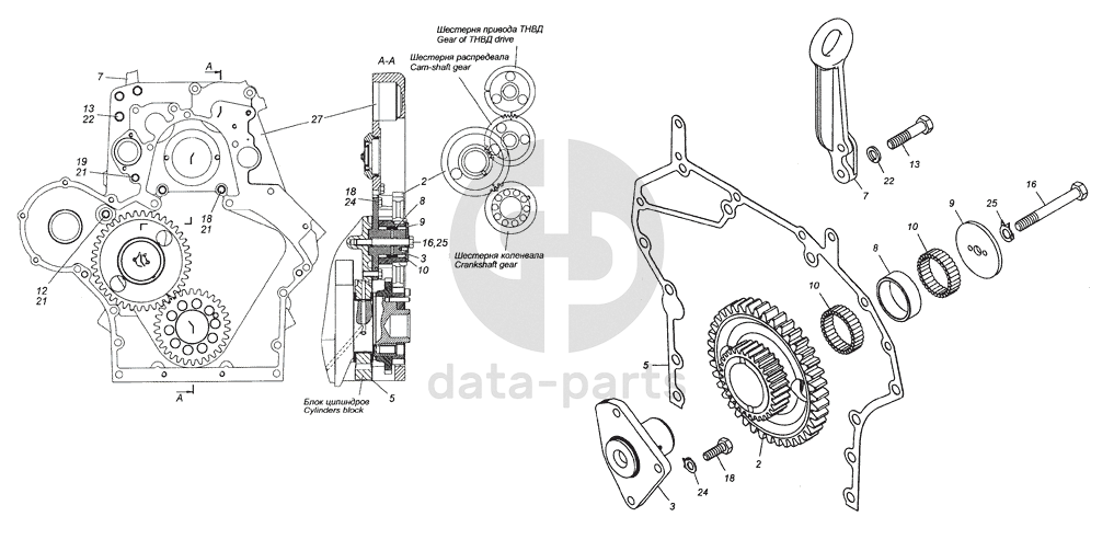 Шестерня КАМАЗ-ЕВРО-2 привода распредвала ведущая в сборе