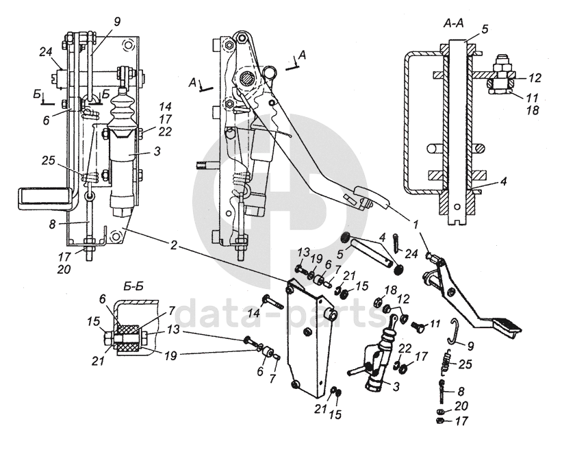 53205-1602008 Педаль сцепления с кронштейном и главным цилиндром в сборе