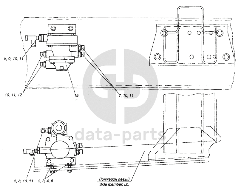 Установка клапана управления тормозами прицепа