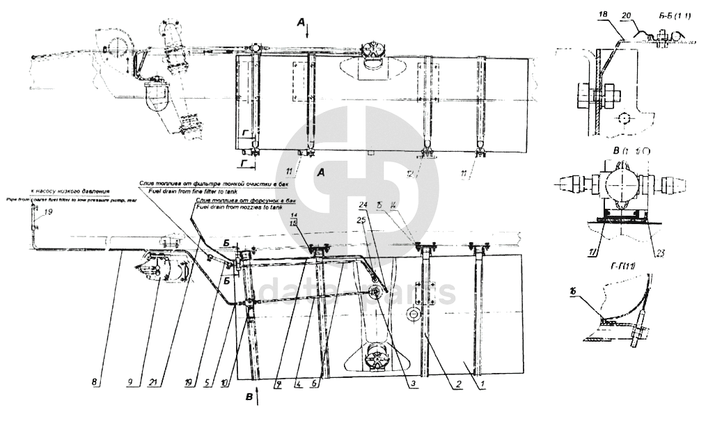 Установка топливного бака, ФГОТ и топливопроводов (53215)