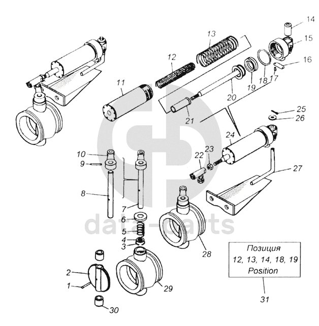 Цилиндр управления заслонкой в сборе