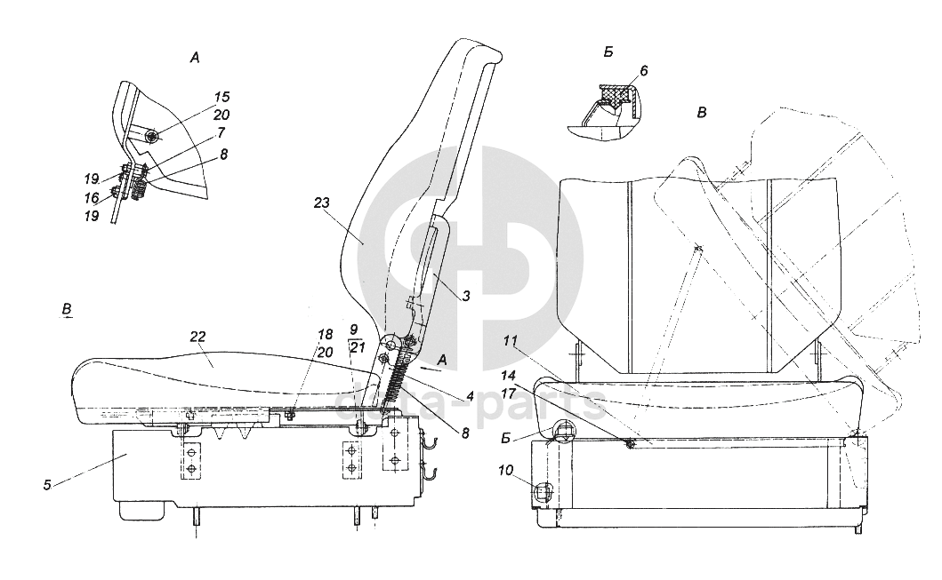 Кронштейн спинки пассажирского сиденья правый в сборе