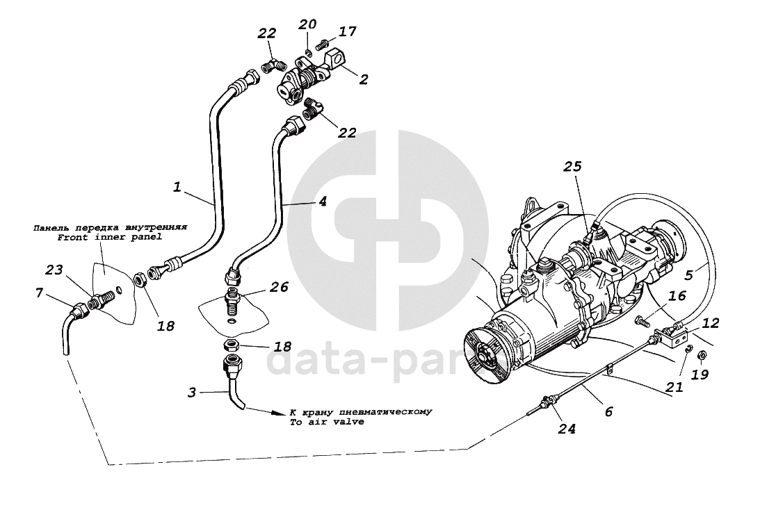 Шланг соединительный привода вспомогательного тормоза в сборе