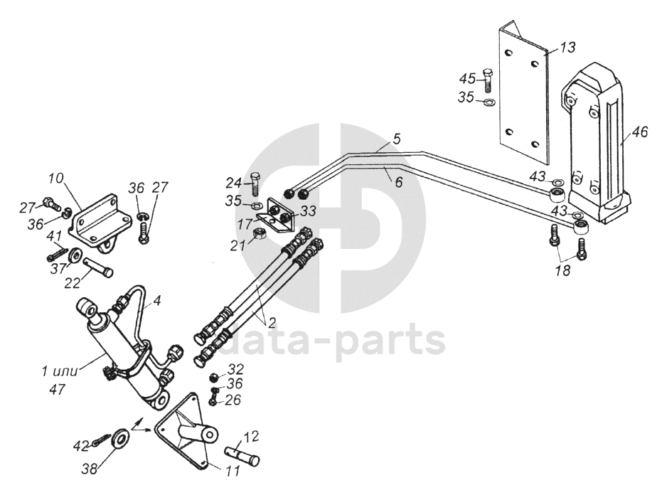Шланг к цилиндру опрокидывающего механизма кабины в сборе