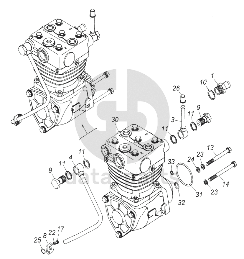 Трубка КАМАЗ-ЕВРО подводящая к 1-но цилиндровому компрессору