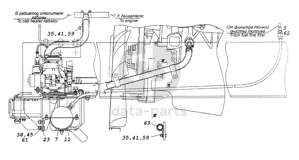 Установка подогревателя, электродвигателя с насосом и топливного фильтра