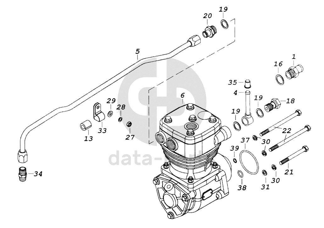 Трубка КАМАЗ-ЕВРО подводящая к 1-но цилиндровому компрессору