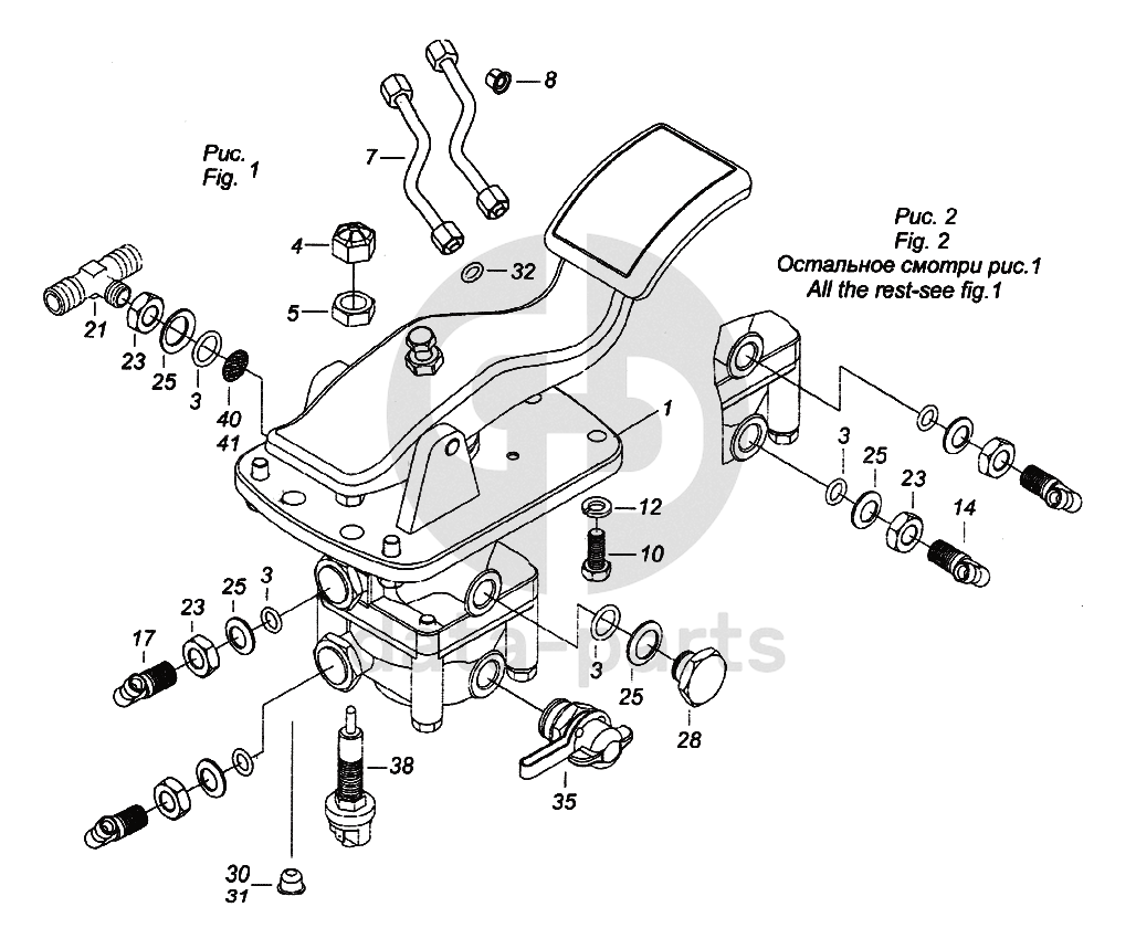 Кран тормозной двухсекционный с педалью в сборе