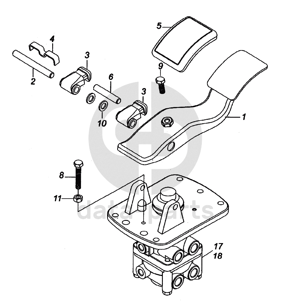 Кран КАМАЗ-ЕВРО тормозной 2-х секционный в сборе с педалью