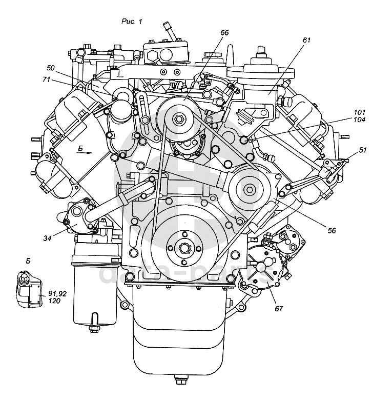 Установка водяного насоса, водяных труб и включателя гидромуфты