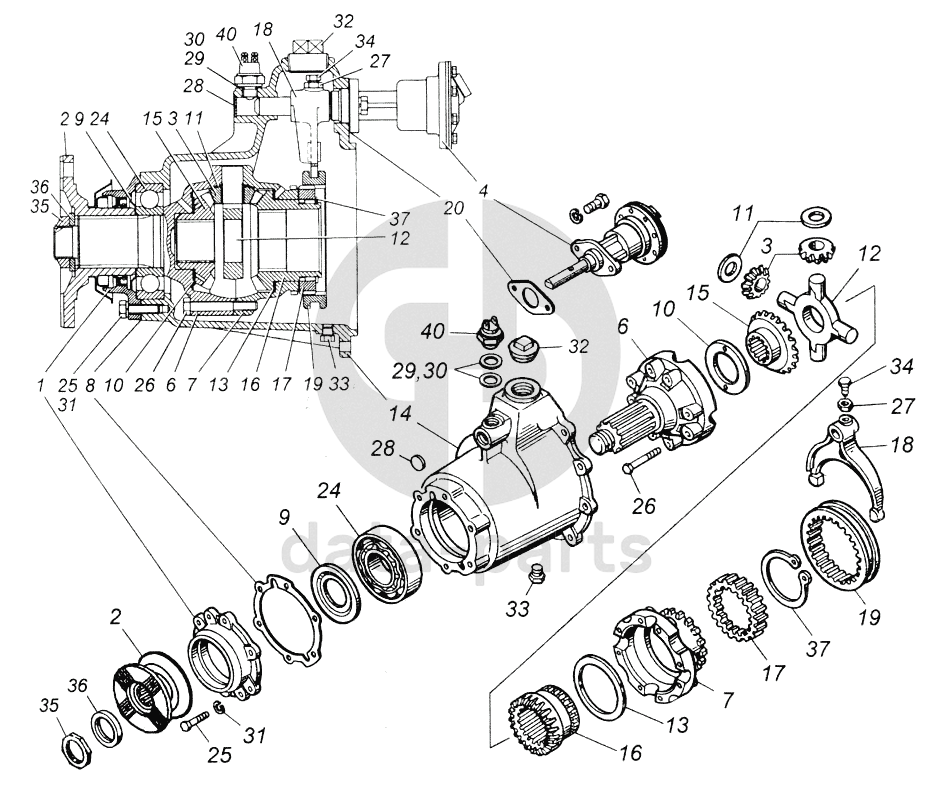 Муфта шестерни привода среднего моста межосевого дифференциала