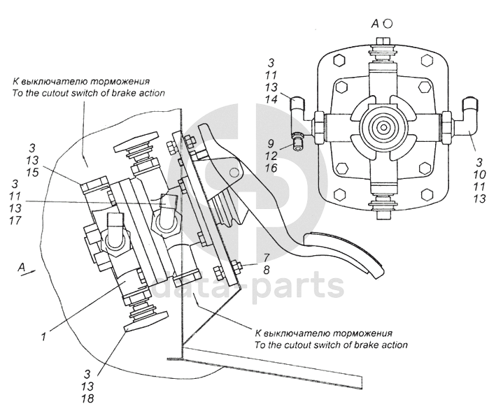 Кран КАМАЗ-ЕВРО тормозной 2-х секционный в сборе с педалью